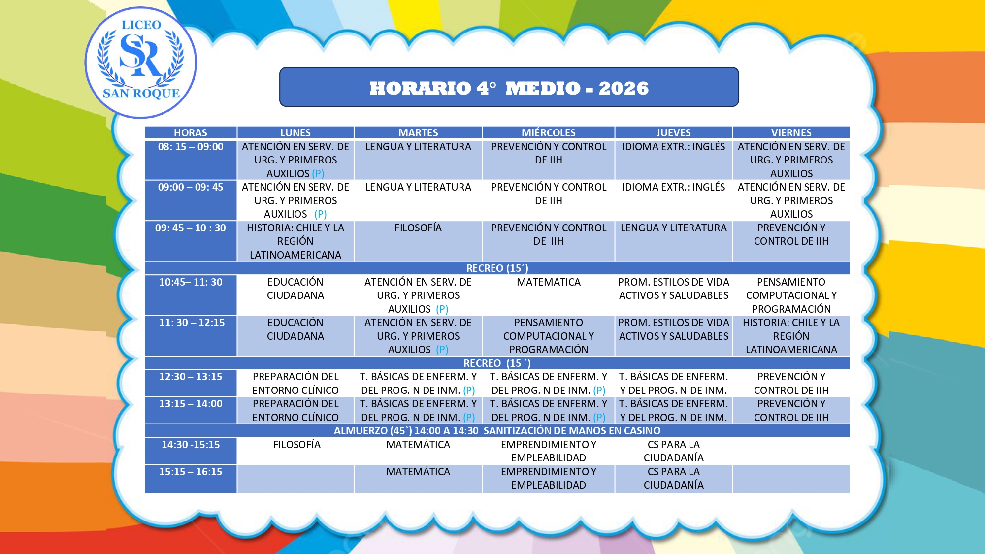 Katherine Molina Docente TENS Profesora Jefe Yazmin Herrera Prof. Ciencias Profesora Madrina Horario 2026 Horario atención de apoderados 2026 Haz click en la imagen para descargar el archivo.